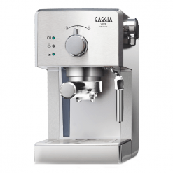 The Viva is the newest addition to the Gaggia family. As you’d expect from Gaggia, it features traditional quality combined with innovative espresso technology. The functions of the machine are controlled by a modern looking twist dial, giving the Viva a sleek chic look which will fit in any modern kitchen. The Viva uses Gaggia’s patented pressurised filter holder technology to help you get the perfect espresso every time. But it doesn’t neglect its traditional root with a quick heating aluminium boiler and a 15 bar pump.