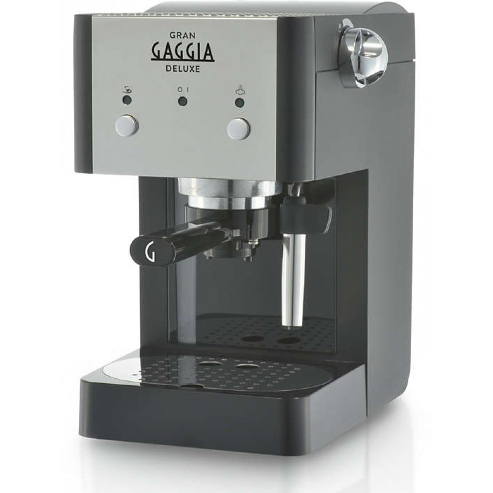 The Gran Gaggia Deluxe is the middle of the Gran Gaggia family, featuring a metal front construction with study ABS plastic sides. The Deluxe model also features an easy to clean steel panarello for milk steaming, and a stainless steel drip tray cover. As with all of the Gran range, the model comes with an ambient cup warmer on the top of the machine.