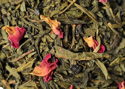Ingredients: Green tea, wild cherry flavouring, rose petals, strawberry flavouring
