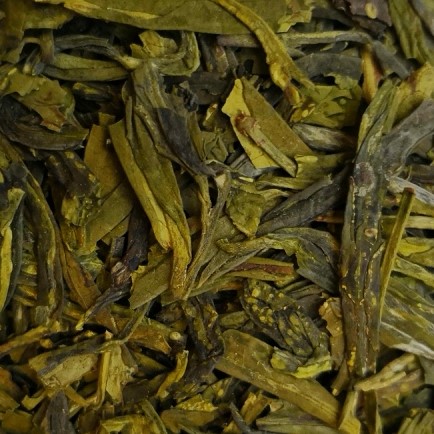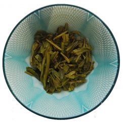 The most well known green tea from Hangzhou, Zhejiang Province of China often referred to as “Dragon Well” tea. This tea is grown in a mountain terrain and in a misty climate. The leaves are pan fried after picking to minimise oxidation and creates very flat, long leaves as shown.